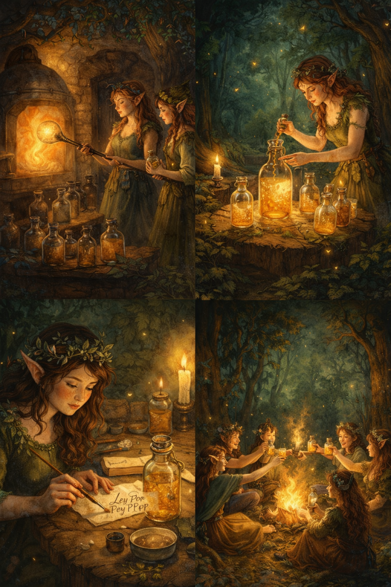 Dann beginnen die Elfen mit der Herstellung von Ley Pop.